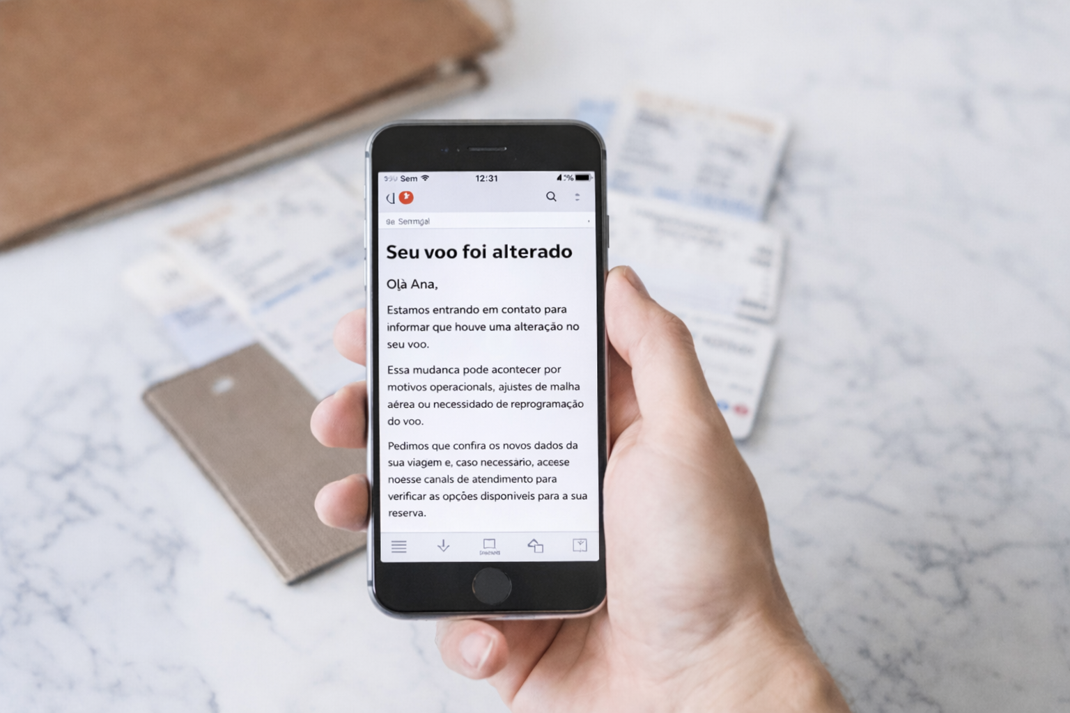 Quando a companhia altera o voo antes da viagem (e-mail de alteração)